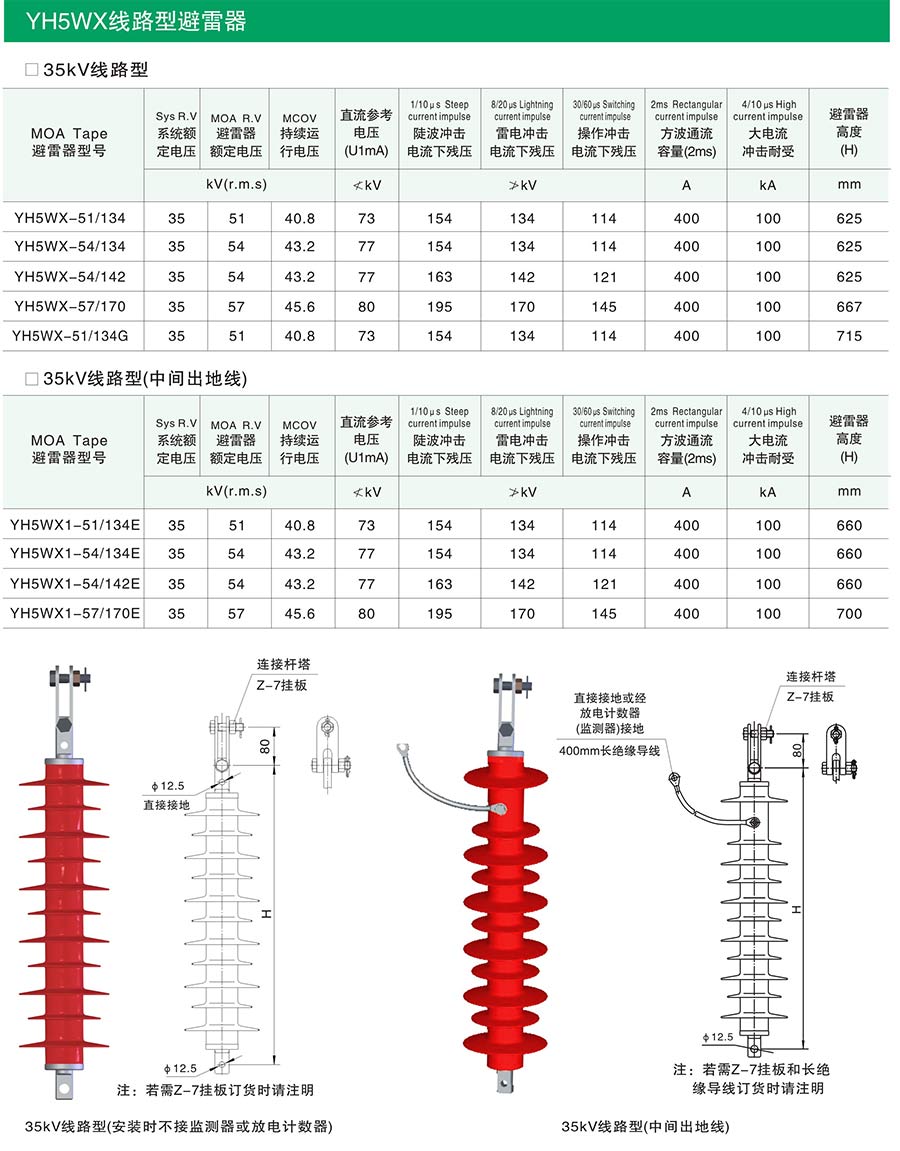 YH5WX線路型避雷器